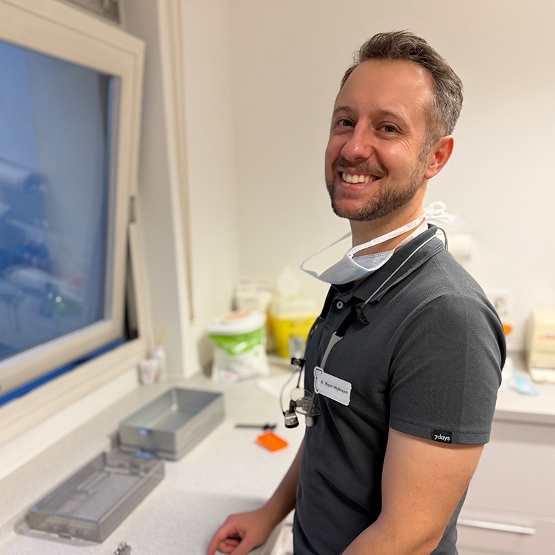 Die Praxis wird geführt von Zahnarzt Jan Steffens. Unterstützt wird er durch den angestellten Zahnarzt Moritz Meyer-Hofmann.